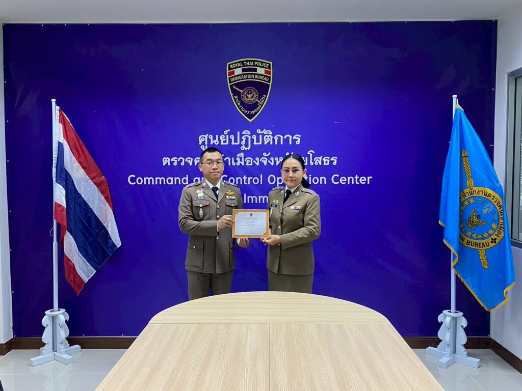 วันนี้ (17 ต.ค.68) เวลา 09.00 น. พ.ต.ท.รัตนธร เดชไธชัยสง สว.ตม.จว.ยโสธร พร้อมด้วยข้าราชการตำรวจในสังกัด จัดกิจกรรม “วันตำรวจ” ประจำปี 2568 โดยมีพิธีการอ่าน “สารจากผู้บัญชาการตำรวจแห่งชาติ” ,มอบใบประกาศเกียรติคุณแก่ผู้ปฏิบัติหน้าที่ดีเด่น ณ ที่ทำการตรวจคนเข้าเมืองจังหวัดยโสธร และทำบุญถวายสังฆทาน เพื่ออุทิศให้กับเพื่อนข้าราชการตำรวจที่เสียชีวิต ณ วัดน้ำคำใหญ่ ต.น้ำคำใหญ่ อ.เมืองยโสธร จ.ยโสธร